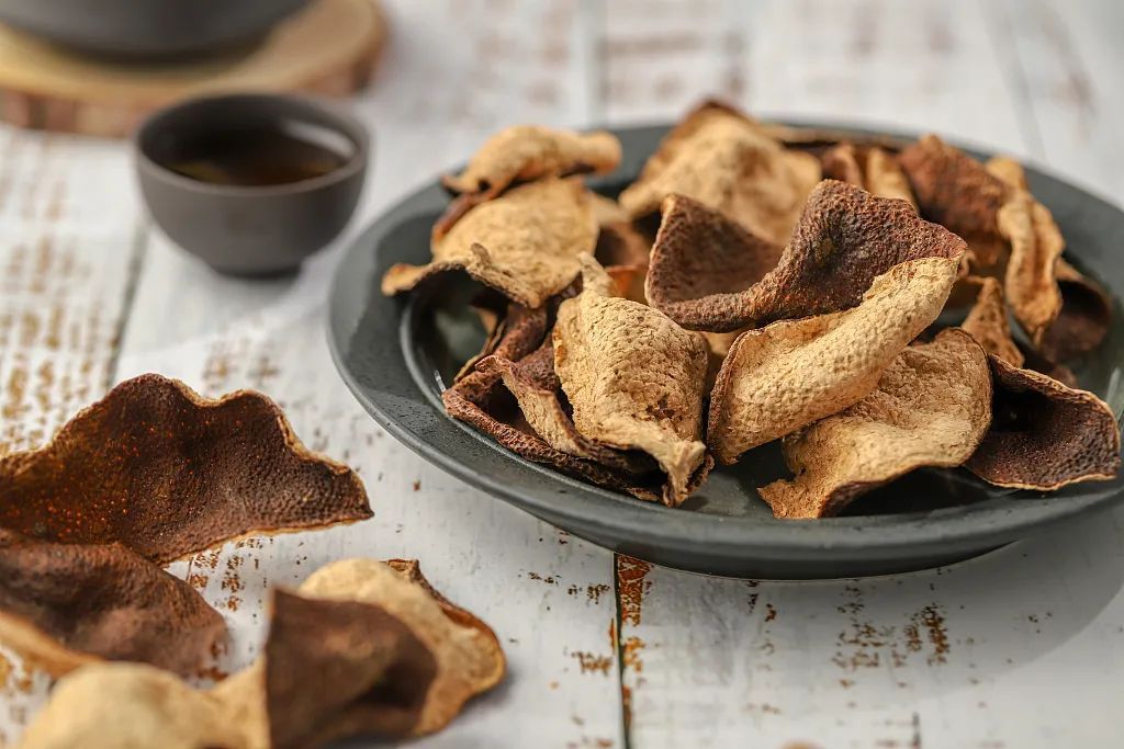 Xinhui is een populaire wijk in de stad Jiangmen, in Guangdong, waar al eeuwenlang deze gedroogde mandarijnschillen, “chenpi” genaamd, worden geproduceerd. De geur ervan wordt door de lokale bevolking geassocieerd met rijkdom. Het productieproces van “chenpi” is lang: de schillen moeten minstens drie jaar in de zon drogen.